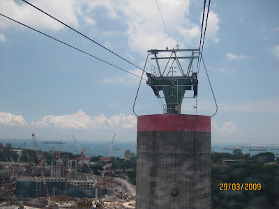 Next stop dolphin lagoon via the ultra-crowded chino-indya internal bus again!!! My first time there, wat a disappointment, it has nuthin at all juz free seating waiting for the show to start... Isit the same with other countries? Damn hot and no shelter, coz all shelter seats taken up... Waited for the show to start... started finally after 10mins under the fireball in the sky. 1 trainer name fiona not bad looking, haha. Dolphin show nuthin really impressive, until the emcee ask for 3 volunteers to interact with the dolphins are muz be willing to be wet up till the knees. Tourists are really sporting. The slots are snapped up in no time. 1 of them was from the indian navy in his uniform. Was it even allowed? Nevermind he took off his shoes and camera and all other water-unproofed items, folded up his pants and went in... when he came out, his pants were wet anyway... The dolphins perform summore and this time another 3 volunteers, muz be willing to be wet till neck level. An angmoh lady went up, a indian tourist and this time another indian navy officer in uniform again... I was like wah... play so big, in uniform, wet till neck oso onz ah... after the briefing, the angmoh lady took off her dress in front of the crowd leaving oni her biniki on, the audience were cheering... thats the way!! Then the indian navy guy lagi power... he oso stripped... he started unbuttoning his shirt and i was like wah play so big ah... under his shirt was a singlet, still ok, then he proceeded to take off his pants... KNN WTF!!! Underneath was his cotton red underwear. Wah lau eh... Brave. Then they proceeded into the water, after they come out, guess out.. the red underwear was so soaked in water and all shaped was moulded through the underwear. Juz ask your bf to wear underwear go bathe and come out and thats wat you see... No nudity lah but juz very stunned. I think if i wear uniform go other country and do this come back sure kana charged like battery. After dolphin lagoon, jess still wans to go to other attractions but strongly objected by ME!! I wana go home... visit 2 places like this already 5pm++ liao. So home we go... by the lok cable car again... This time we got caught in a storm... with lightnings every 10 secs and they look so near. Scary... Then after 1 kao lut lightning/thunder combo, the cable car all stopped.. left us hanging midair. Wind so strong summore... looked down, nabei zhun zhun is the beacon underneath... if drop down sure siao... down into sea still got chance... haha... Operations resumed after hanging for 5 mins. Finally.. out of sentosa... although i sound like a wet blanket.. but i'm glad my gals enjoyed it... lets not do it again...